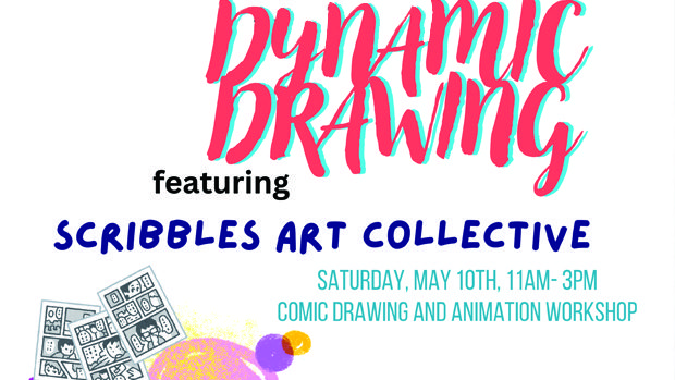Dynamic Drawing is a drawing workshop that teaches techniques for drawing comics, cartoon, and animation regardless of drawing experience. Teens are encouraged to come! All materials are provided. So come join Scribbles Art Collective for a lively time!